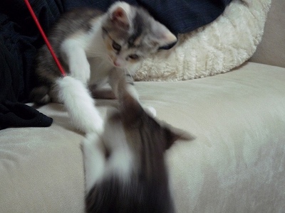 こうしてしばらく猫じゃらしにもてあそばれる二匹。