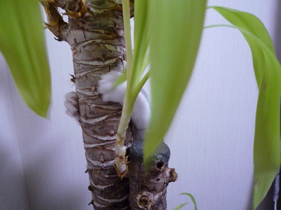 今日はどっちが登ってるの!?と植物さんの裏にまわりこむ。