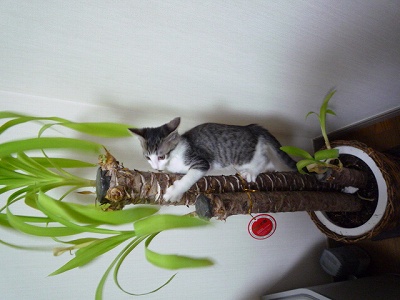 というのは、このように 何者かがよじ登り、枝や葉をガブガブしてしまうからなのですが・・・。