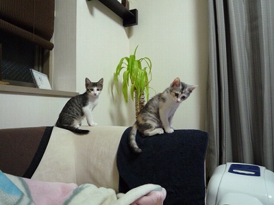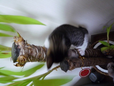 ねぇモモやめて~。つられてサクラも登り始めるから(泣)