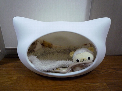 ネット上のショップで見て一目ぼれした猫の顔型のベット。